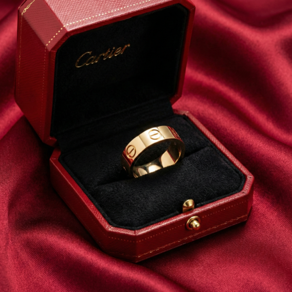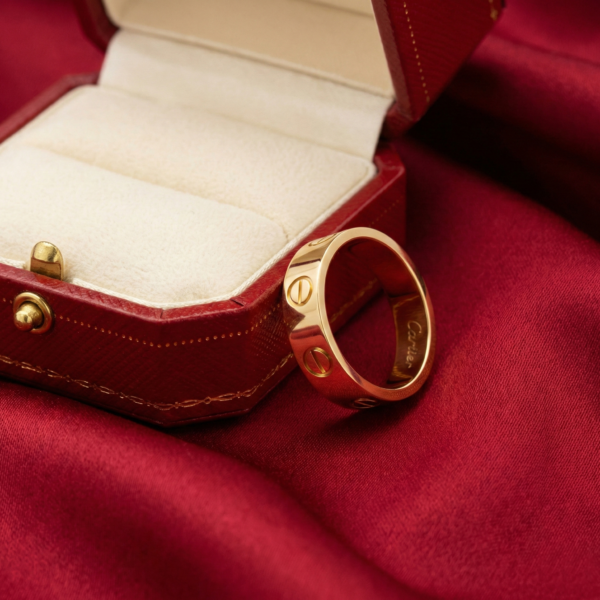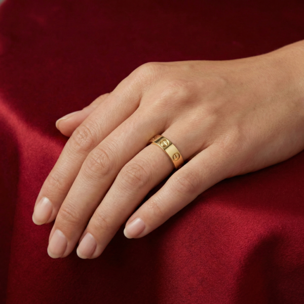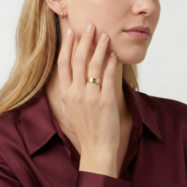 The Cartier’s, LOVE Ring Classic, Gold Filled masterfully blends bold design with enduring elegance. This exquisite piece features a fully paved setting of sparkling cubic zirconia stones, creating a dazzling play of light. The distinctive screw motifs and ideal oval shape establish this creation as a timeless tribute to romance.