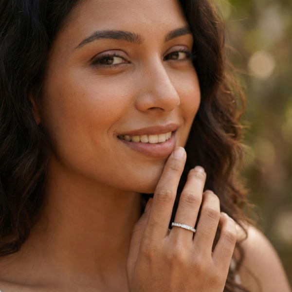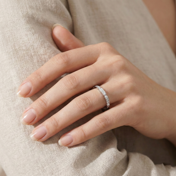 I bought this to pair with my engagement ring, and they complement each other perfectly. The pavé catches the light subtly — it’s quiet luxury in ring form.