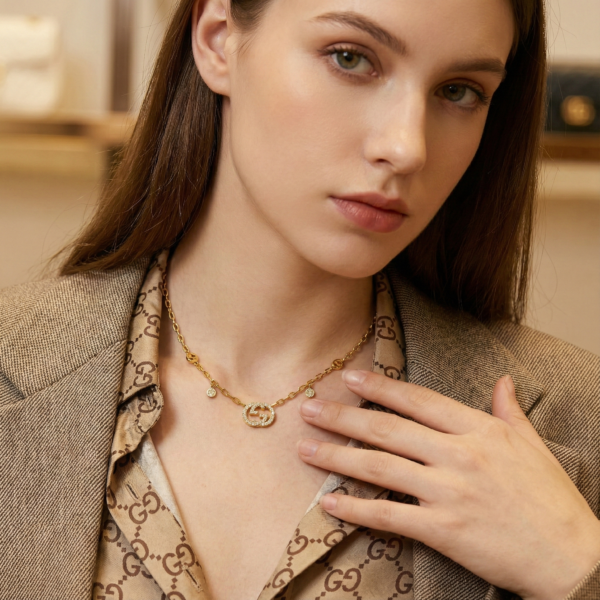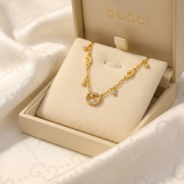 Crafted from 925 silver gold-filled 3 microns thick, this necklace promises enduring brilliance and hypoallergenic comfort, ensuring it’s gentle on all skin types, even the most sensitive. Every detail, from the precision-cut stones to the polished finish, reflects Gucci’s unwavering commitment to craftsmanship, transforming this piece into a versatile statement for any ensemble. The adjustable chain length allows for effortless styling, adapting seamlessly to your personal aesthetic. With a design that is up to 90% similar to the original brand, this piece offers you the luxury look of high-end jewelry at a much more affordable price — a perfect choice for those who appreciate beauty and elegance.