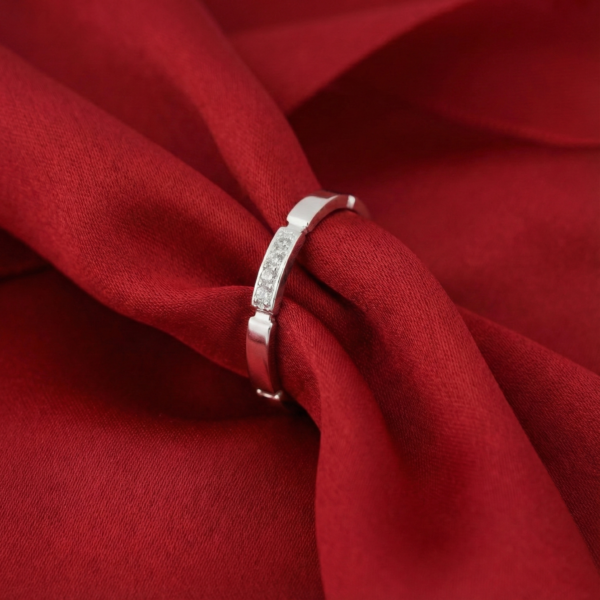 Inspired by Cartier’s iconic aesthetic, the Maillon 4-Stone Ring embodies modern elegance through its bold square-shaped band, exuding both strength and sophistication. The centerpiece features a row of brilliant cubic zirconia stones, meticulously set to create a captivating sparkle.