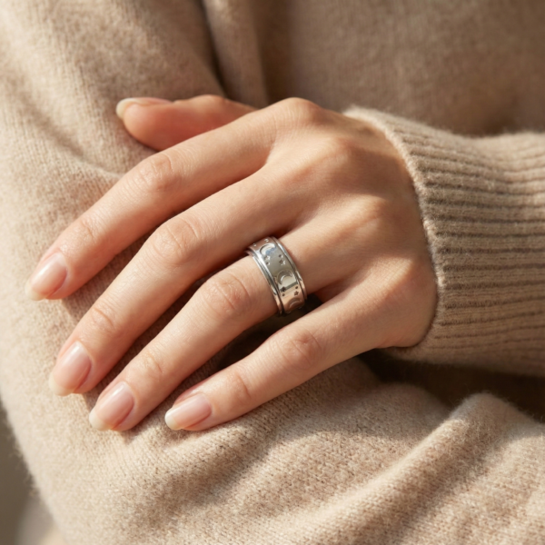 I didn’t expect a fidget ring to look this pretty! The moon and star details are subtle but magical. It spins smoothly and helps with my anxiety during meetings. The quality is amazing for the price. I wear it daily and it still looks new. Highly recommend!