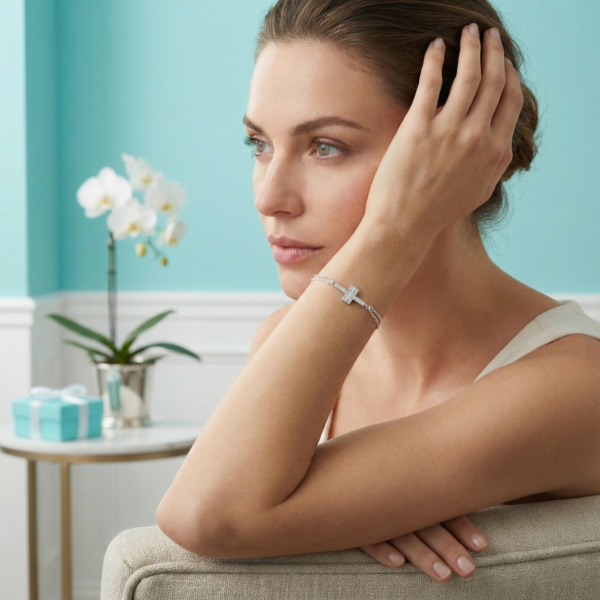 This bracelet, featuring a “T” initial design adorned with sparkling stones, is perfect for those who love understated elegance with a touch of flair. The “T” symbol embodies individuality and strength, representing a blend of modern and classic styles that creates a unique and eye-catching accent. A standout piece from Tiffany & Co.’s latest collection — and one of this year’s most sought-after designs.
