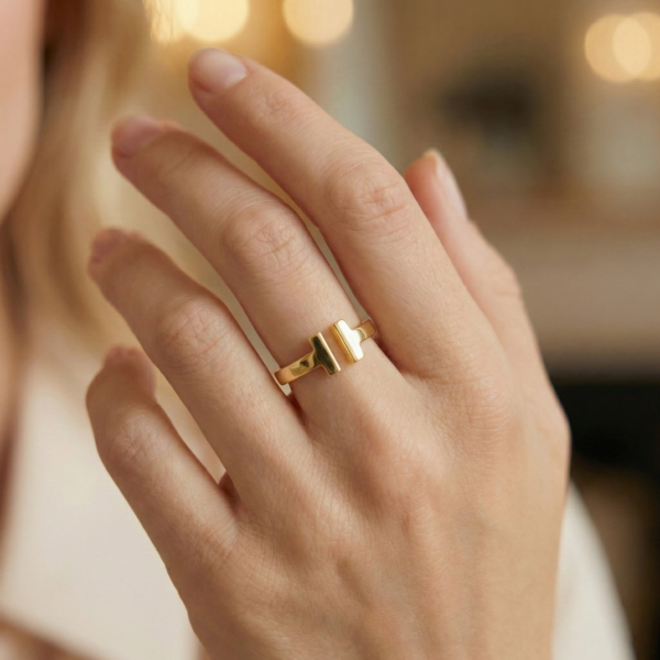 The minimalist yet refined design makes this ring versatile enough to complement any style, from casual everyday wear to formal occasions. The “T” symbolizes not only strength but also connection and endurance.