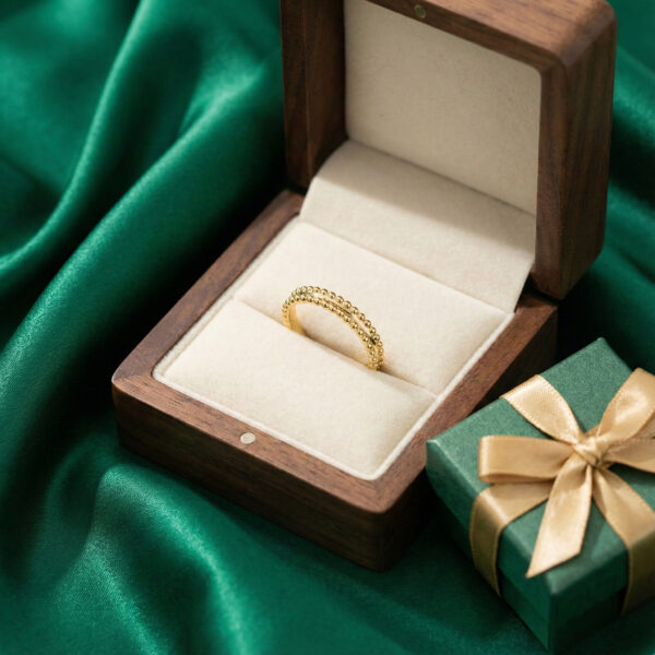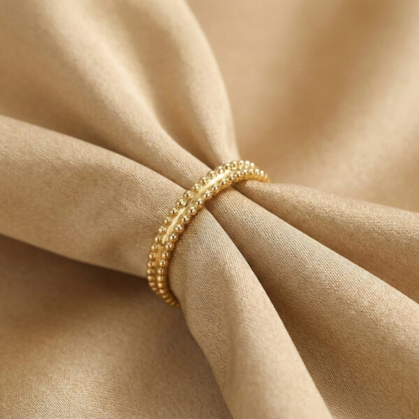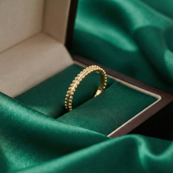 For connoisseurs of Van Cleef & Arpels’s signature craftsmanship, the Estelle Wedding Band is a love letter to understated luxury. This ring dances with light through its exquisitely beaded design—each tiny, polished sphere reminiscent of glistening dewdrops, arranged in two elegant rows for a texture that’s both softly tactile and strikingly refined.
