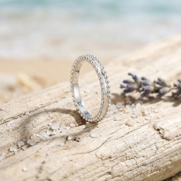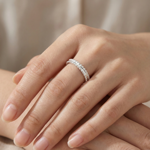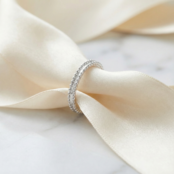 For connoisseurs of Van Cleef & Arpels’s signature craftsmanship, the Estelle Wedding Band is a love letter to understated luxury. This ring dances with light through its exquisitely beaded design—each tiny, polished sphere reminiscent of glistening dewdrops, arranged in two elegant rows for a texture that’s both softly tactile and strikingly refined.